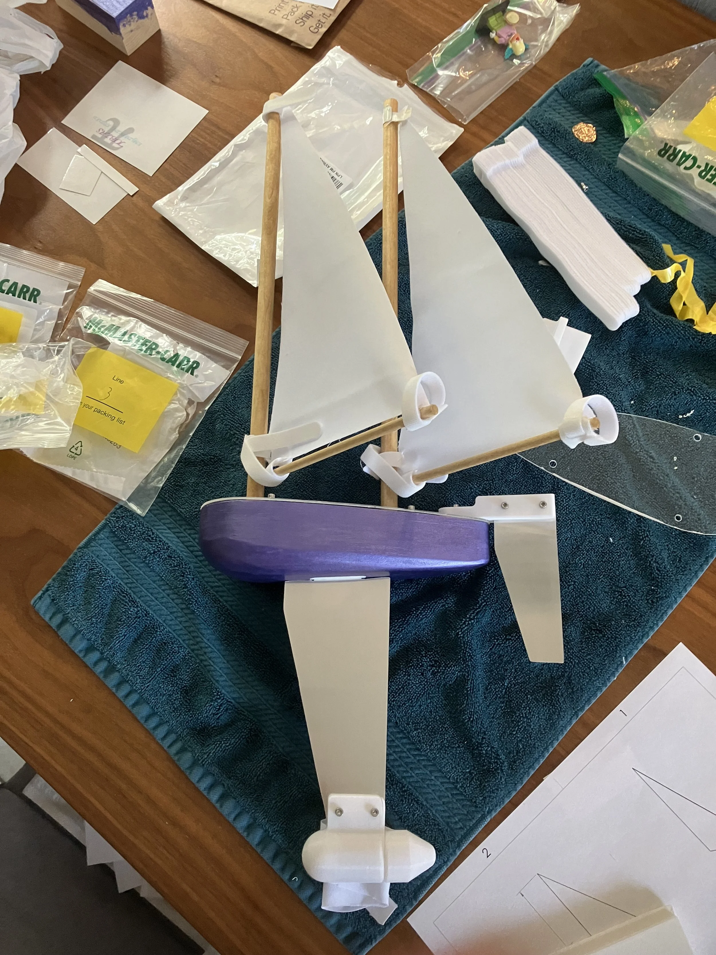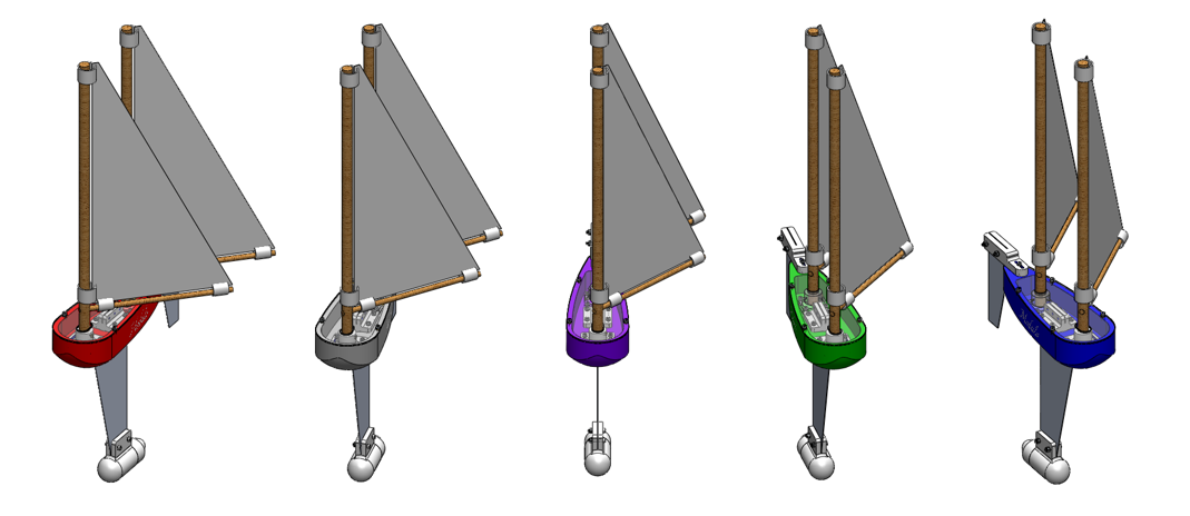 · Interchangeable keel, rudder, masts, and sails